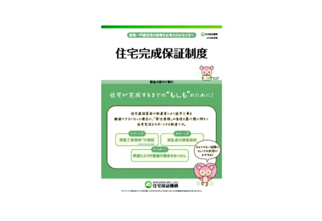 完成保証制度は、事業者倒産により工事が中断した場合に、発注者様の負担を最小限に抑えるため、住宅保証機構が増高工事費用や前払金の損失の一定割合を保証するものです。また、発注者様の希望により工事を引き継ぐ事業者をあっせんします。